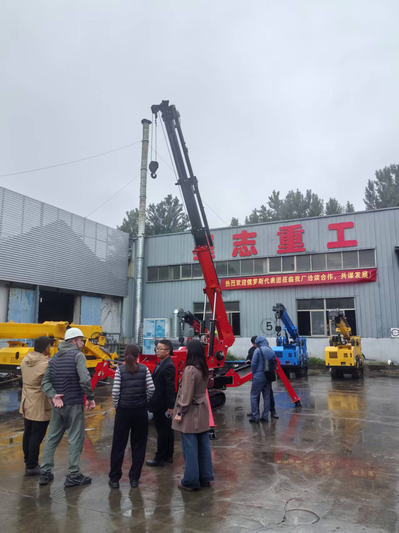 (俄羅斯客戶與星志重工技術(shù)人員探討蜘蛛吊車產(chǎn)品細(xì)節(jié))